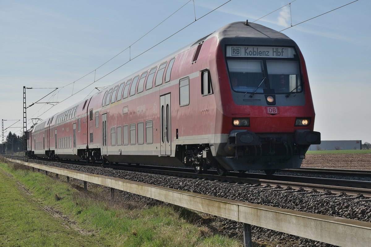 Am 11.04.2018 ist eine RB nach Worms kurz vor der Rheinbrücke Worms unterwegs.