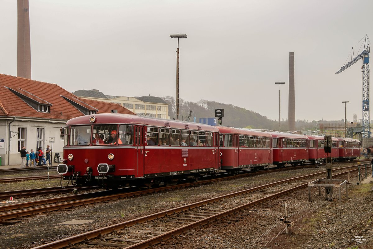 15.04.2018  Der Planzug ist soeben am Bahnsteig 3 angekommen und man wartet auf das Aufschließen der Weichen zum umfahren des Zuges.