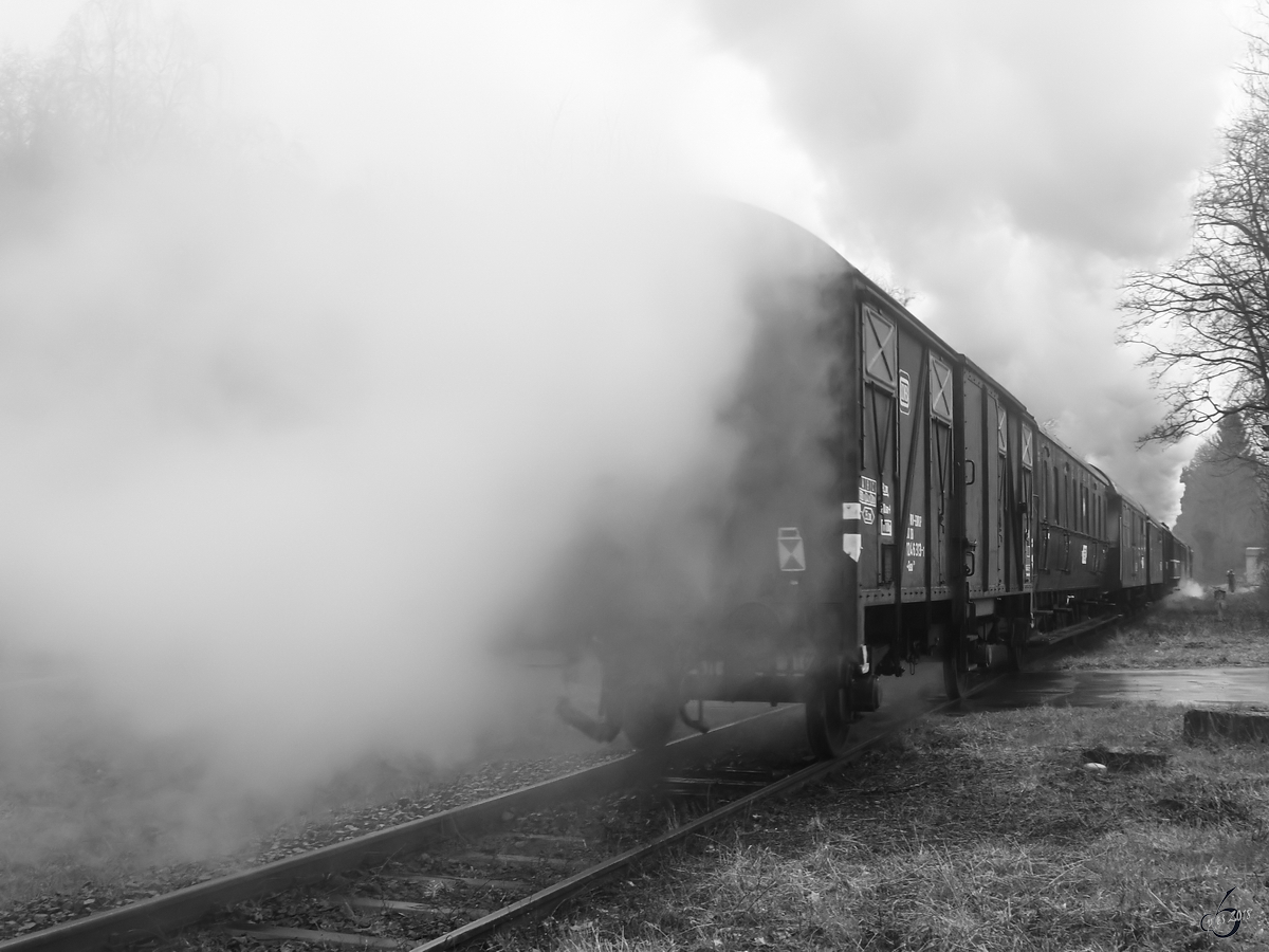 Jede Menge Dampf am Ende des Zuges auf der mittleren Ruhrtalbahn. (Witten, April 2018)