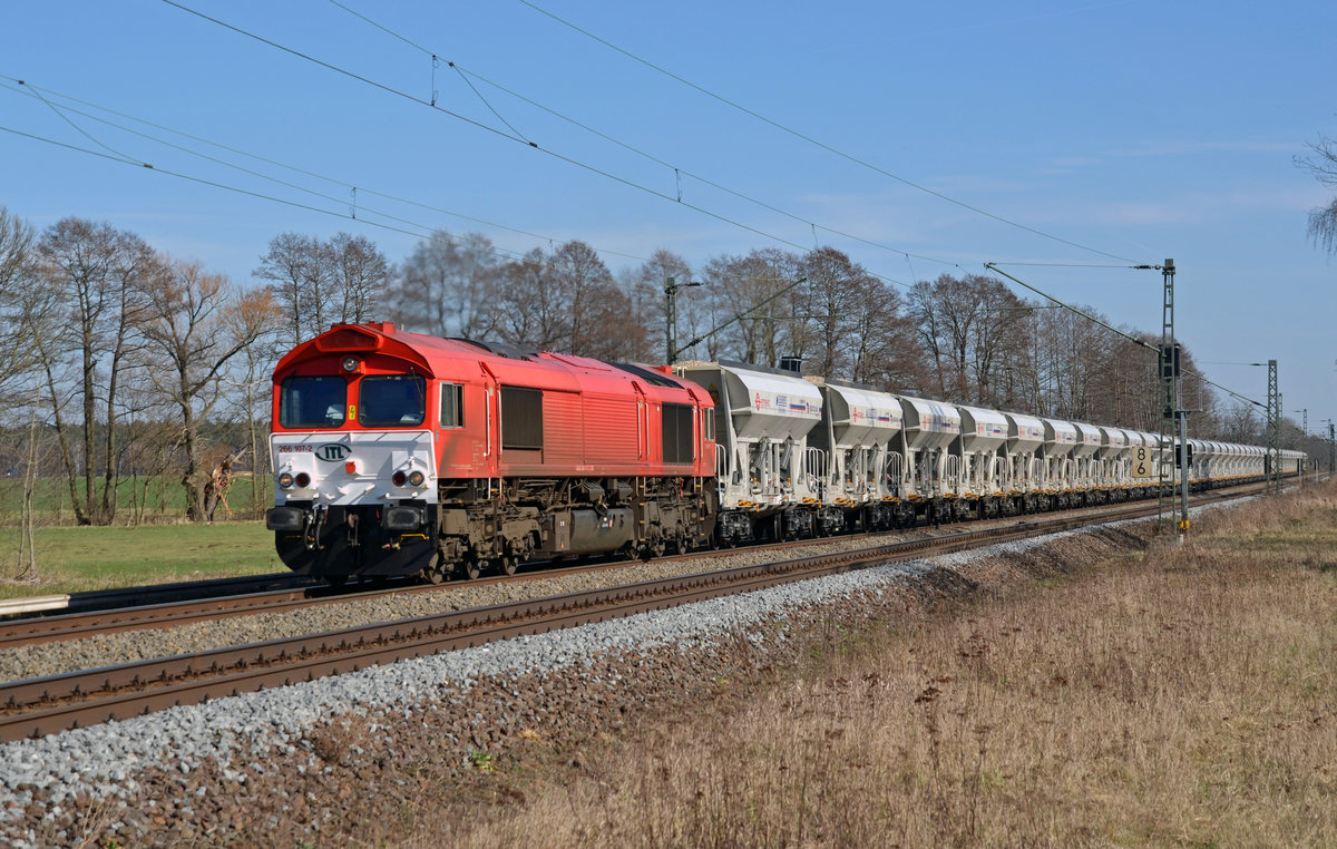 266 107 führte einen Kieszug, welchen sie in Mühlberg/Elbe bei Elbekies übernommen hatte, am 07.04.18 durch Jütrichau Richtung Magdeburg.