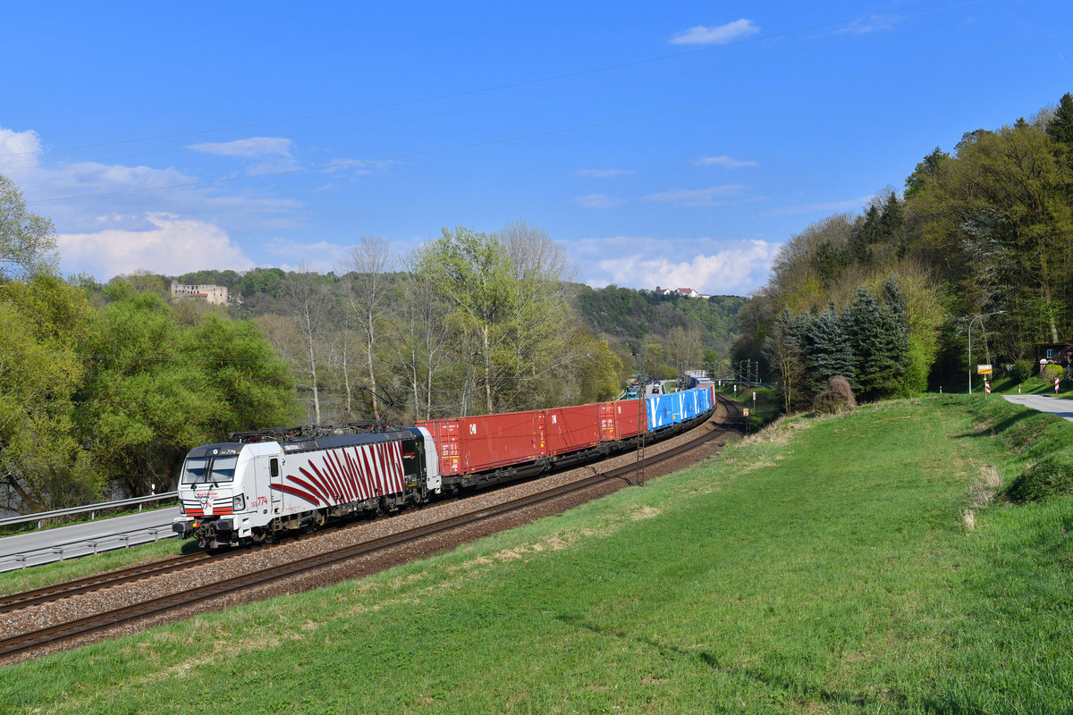 185 716 mit einem Kesselzug am 17.04.2018 bei Wernstein am Inn.
