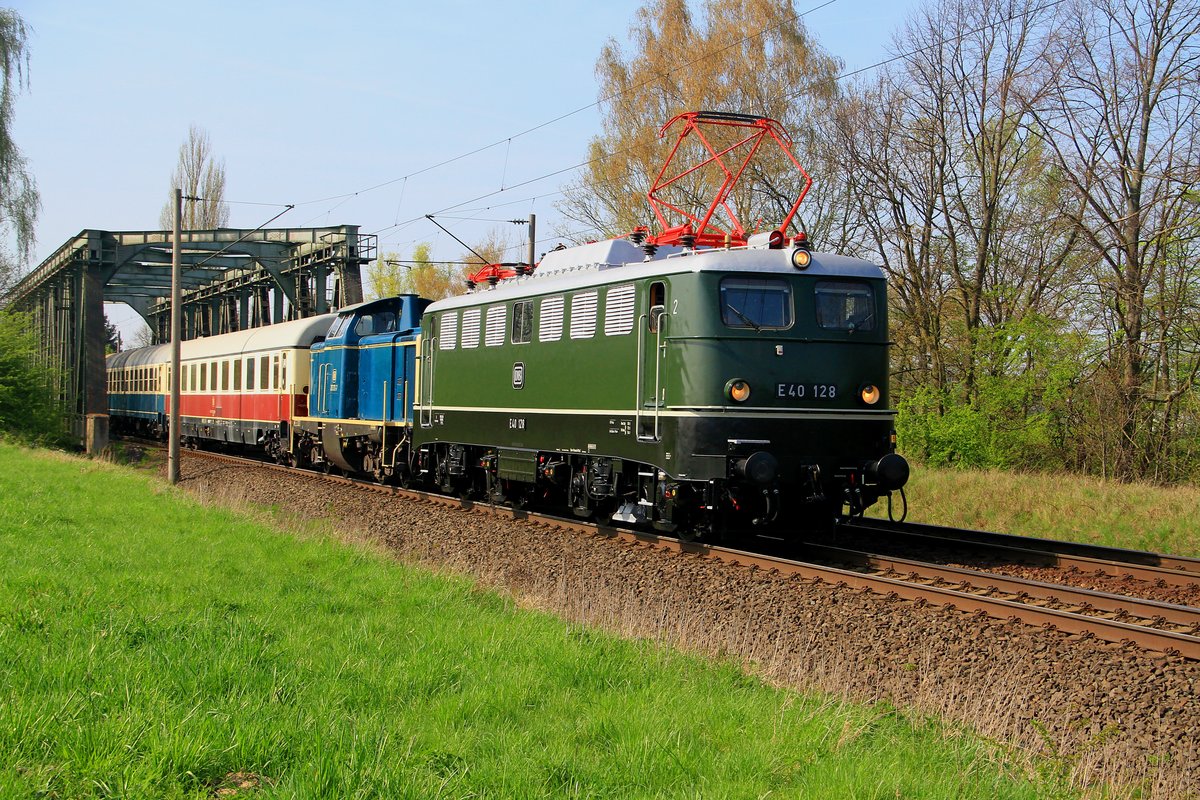 E 40 128 mit 212 372 kurz nach Überquerung des Mittellandkanals bei Peine am 18.04.2018
