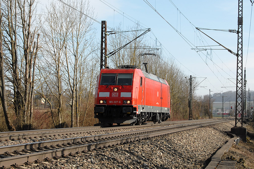 185 019-7 DB als Gz passiert die Zugbildungsanlage Halle (Saale) in südlicher Richtung. Aufgenommen von der Berliner Brücke. [24.2.2018 | 9:08 Uhr]