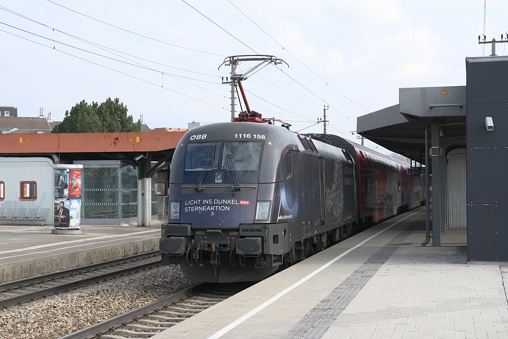 Sterndllok 1116.158 war am 2.4.18 auf die Reg.von und nach Payerbach/R.,wie hier bei der Einfahrt in Schlöglmühl.
