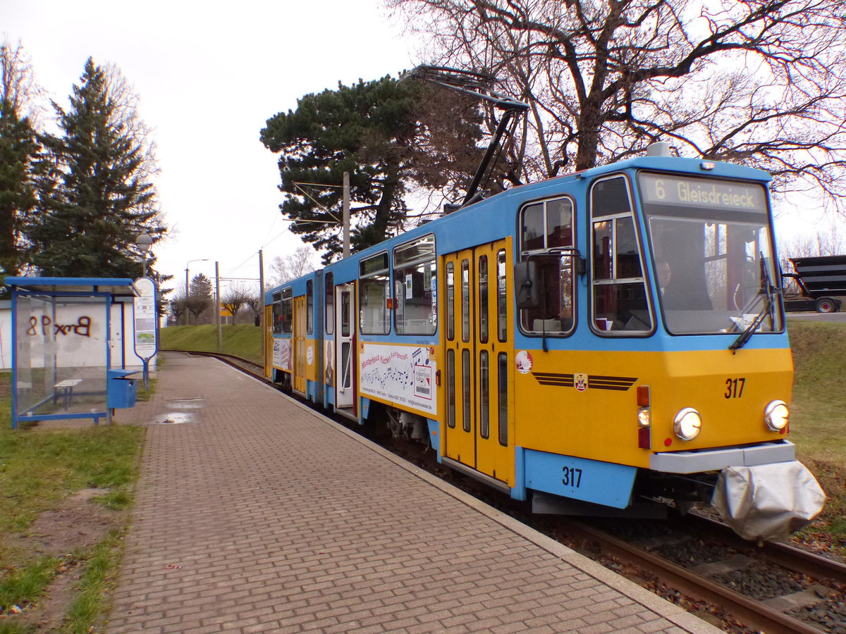 TWSB 317 als Linie 6 zum Gleisdreieck Waltershausen, am 31.12.2018 in der Wendeschleife am Bahnhof Waltershausen.