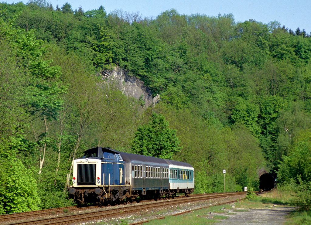 79 726 + 996 836 bei Geilertsreuth (Strecke Neustadt (W) - Floß - Eslarn) am 19.05.1990