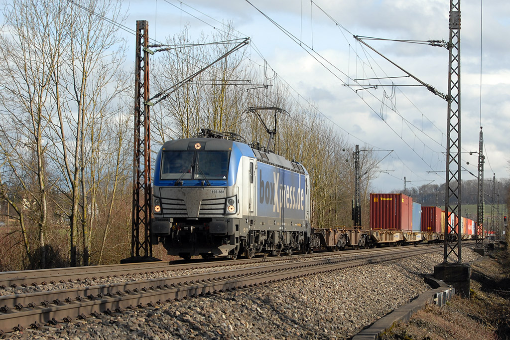 Kurz nach der Abfahrt in Singen (Hohentwiel) wurde die von ELL an SBB International vermietete 193 256 auf der Fahrt Richtung Schaffhausen am 21.04.2018 fotografiert.