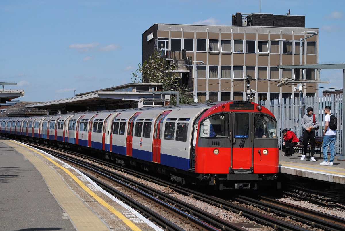 1973 Stock Zug der Picadilly Line in der Haltestelle South Harrow. (18.04.2018)