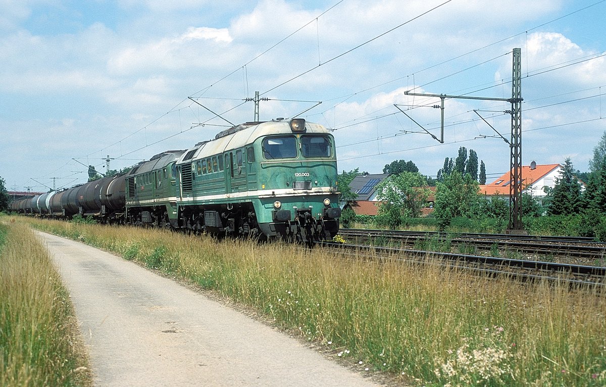 Die 1878 eröffnete Nebenbahn von Senden nach Weißenhorn verlor bereits 1966 den Personenverkehr, wurde wegen des hohen Güteraufkommens aber nicht stillgelegt. Seit Dezember 2013 verkehren hier auch wieder Personenzüge. Im August 2010 trifft 294 811-5 mit einem beachtlich langen Güterzug in Senden ein, rechts die Illertalbahn Neu Ulm - Memmingen (Dia-Scan).