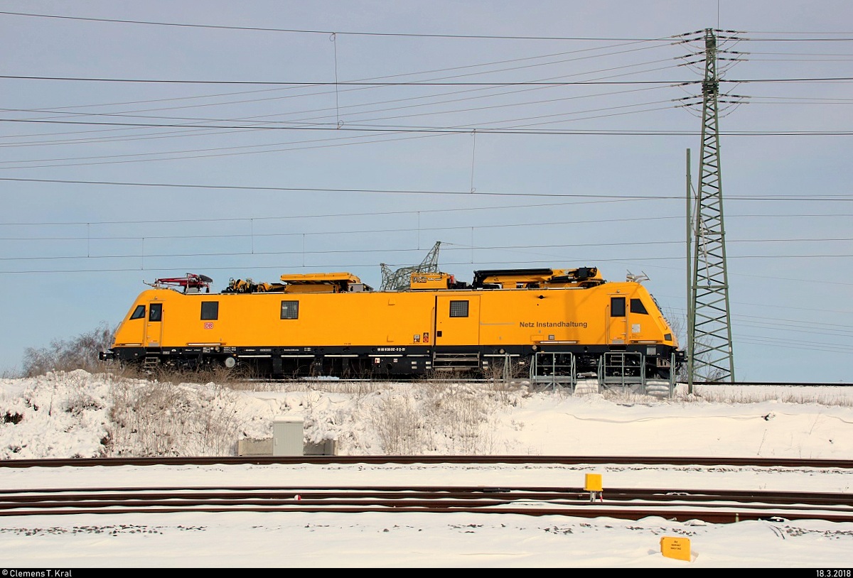 711 210 der DB Netz Instandhaltung steht in Halle (Saale), Karl-von-Thielen-Straße, auf der Ostumfahrung für den Güterverkehr. [18.3.2018 | 12:34 Uhr]