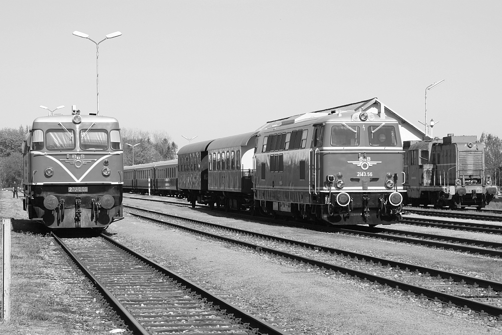 NLB 2143.56 am 21.April 2018 beim Frühlingsfest des Verein Neue Landesbahn in Mistelbach LB. Im Hintergrund erkennt man die NLB 2045 009-4.