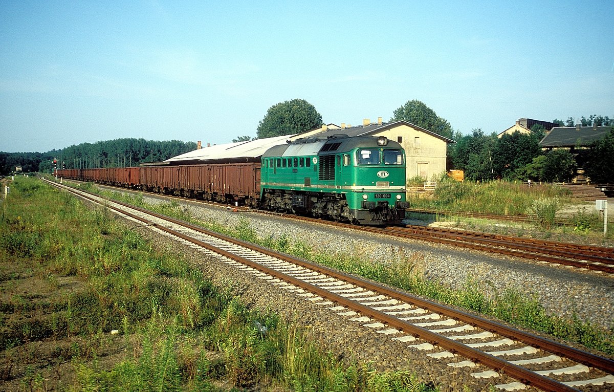 Ein Atlas Zweiwegebagger durchfährt den Haltepunkt mit einem Stück Holz. [24.2.2018 | 9:46 Uhr]