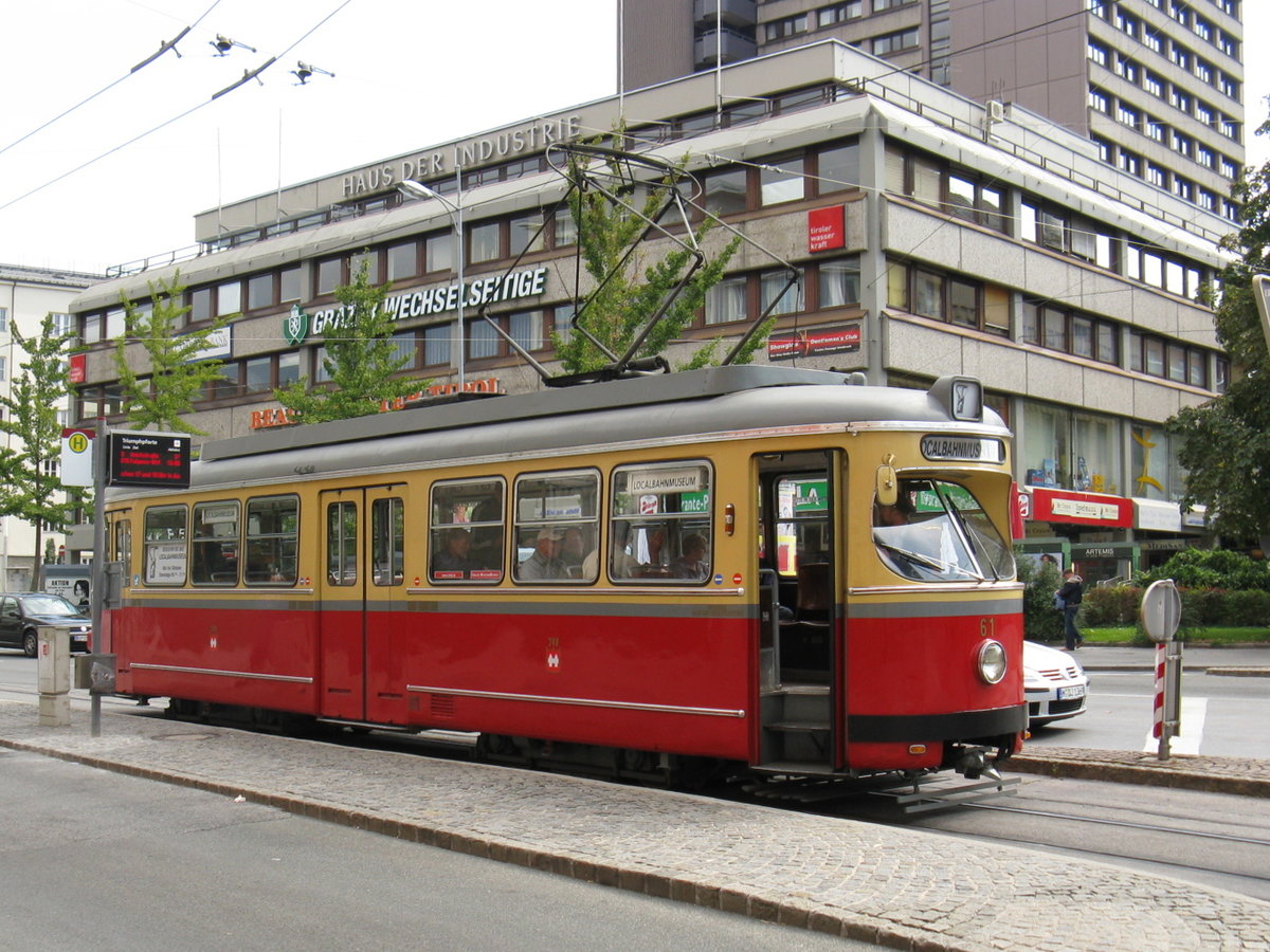 Tw. 61 der Tiroler Museumsbahnen (Lohner/Lizenz Duewag 4-achser) als Zubringer zum Localbahnmuseum bei der Hst. Triumphpforte in Innsbruck. Aufgenommen 20.9.2008.