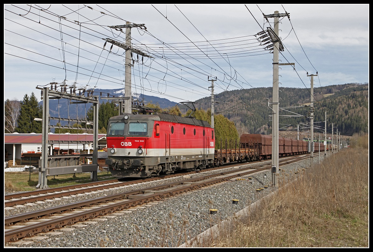 1144 240 mit Güterzug bei Oberaich am 4.04.2018.