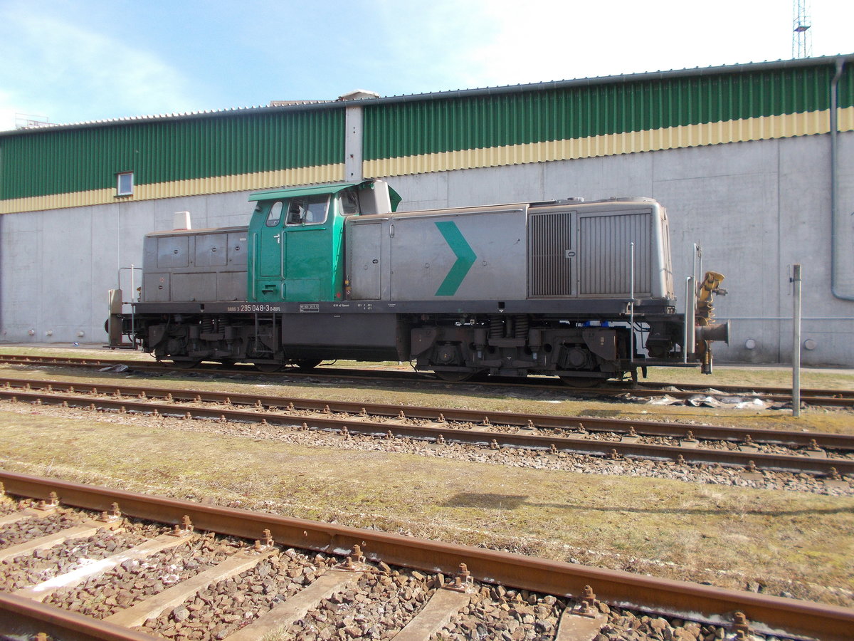 Am 04.April 2018 stand die "Neue" Rangierlok BUVL 295 048 im Stralsunder Nordhafen.Aufnahme durch den Zaun.