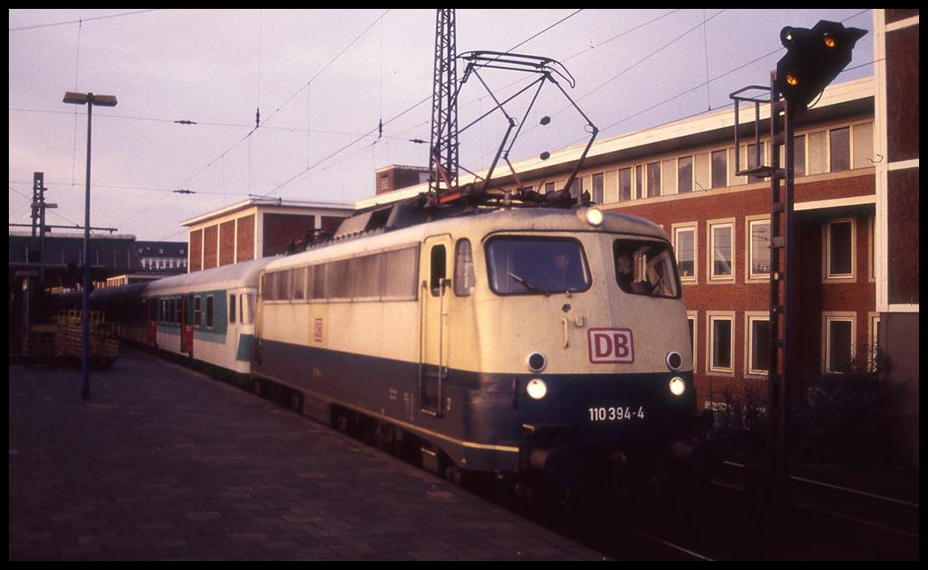 110394 hält hier am 18.2.1995 mit einem Nahverkehrszug nach Rheine Emden im HBF Münster.