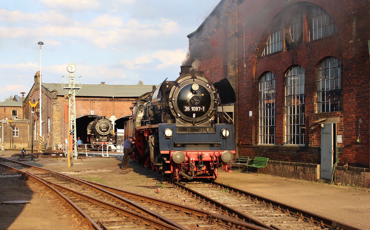 Zum 27.Heizhausfest in Chemnitz-Hilbersdorf sah man am 17.08.18 die 35 1097-1 am Lokschuppen.