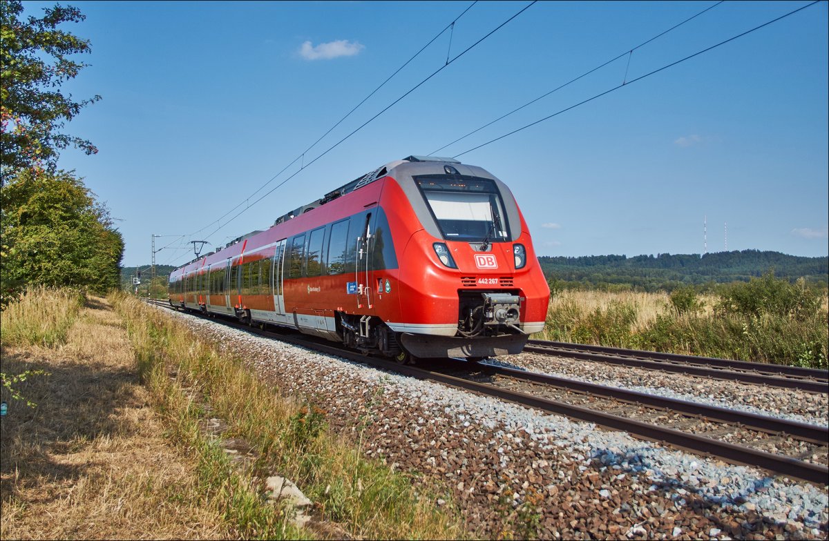 110 262 der BayernBahn fährt am 16. August Lz durch Westerstetten Richtung Stuttgart.