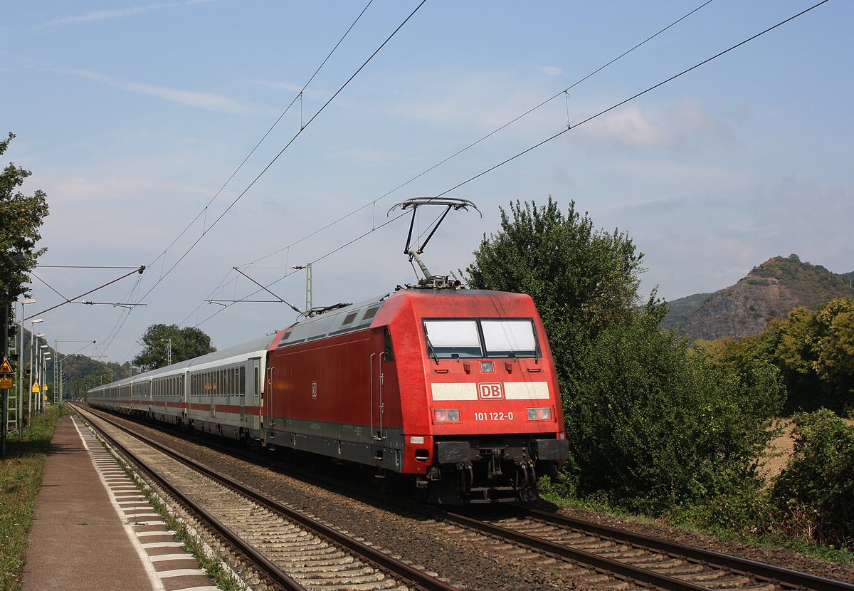 Die 101 122-0 der DB Fernverkehr mit einem IC aus Koblenz kommend durch Namedy in Richtung Köln.