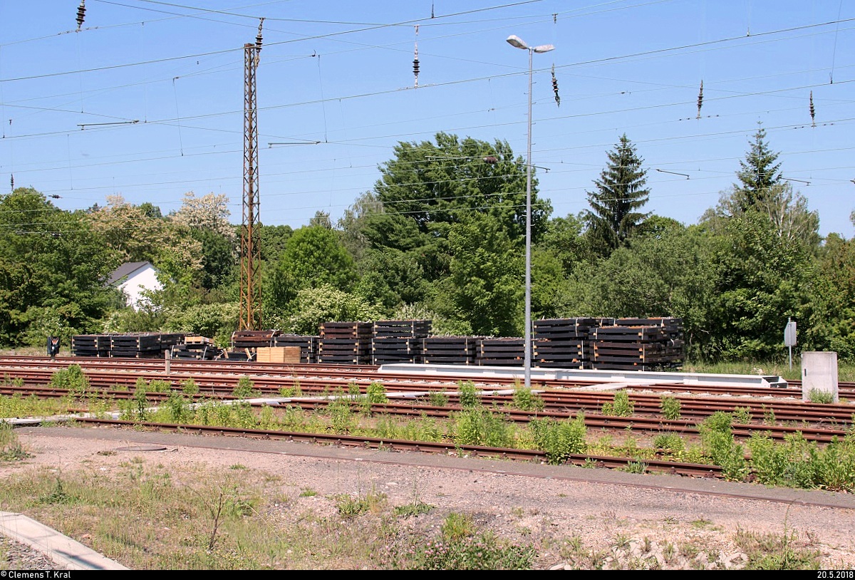 Aufgrund von anstehenden Gleisbauarbeiten zwischen dem Hp Halle-Neustadt und Halle Zscherbener Straße verweilen zahlreiche Schwellen im Bahnhof Halle-Nietleben.