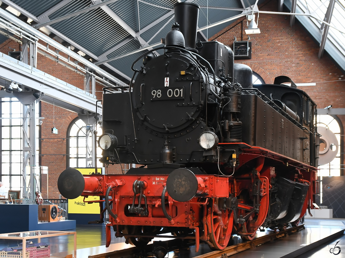 Die Dampflokomotive 98 001 ist im Sächsischen Industriemuseum Chemnitz ausgestellt. (August 2018)