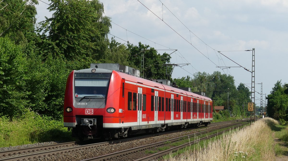 Eine S7 nach Riedstadt-Goddelau verlässt den Haltpunkt Groß-Gerau Dornheim. Aufgenommen am 7.6.2018 18:03