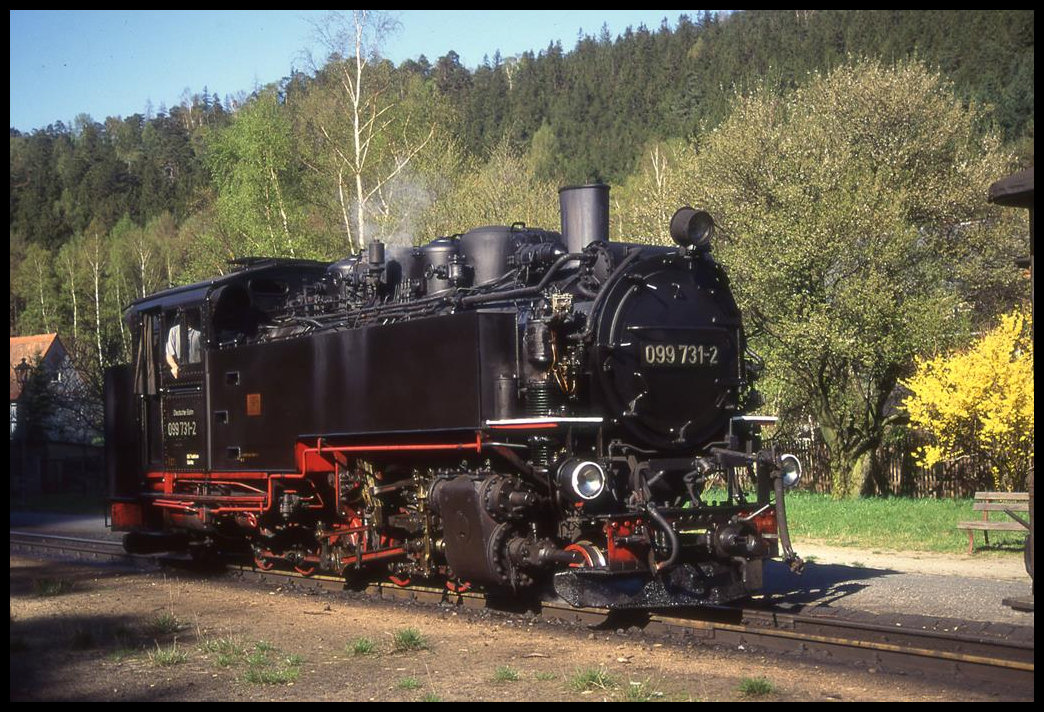 Blick am 3.5.1995 auf das Depot Gebäude der Kirnitzschtalbahn in Bad Schandau.