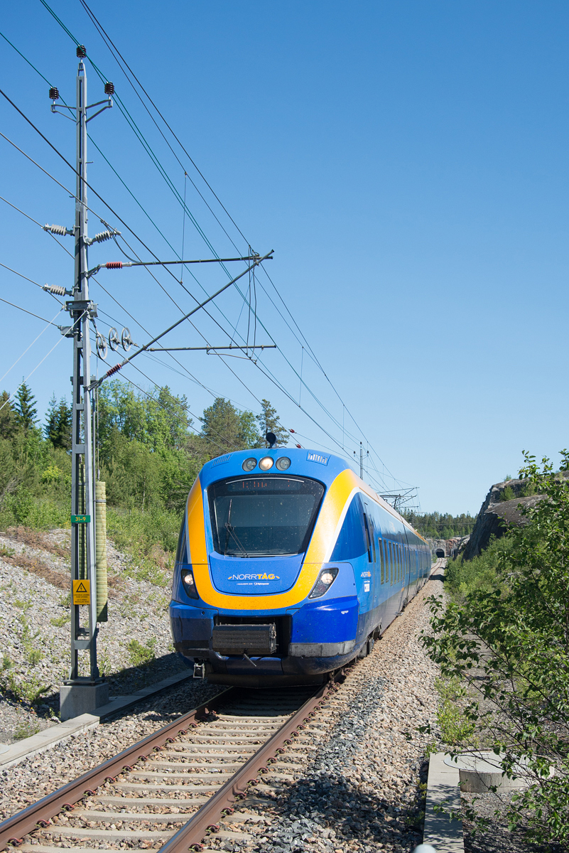 Ein Norrtåg-Regionaltriebzug am 12.06.2018 zwischen Rundvik und Husum in Richtung Örnsköldsvik