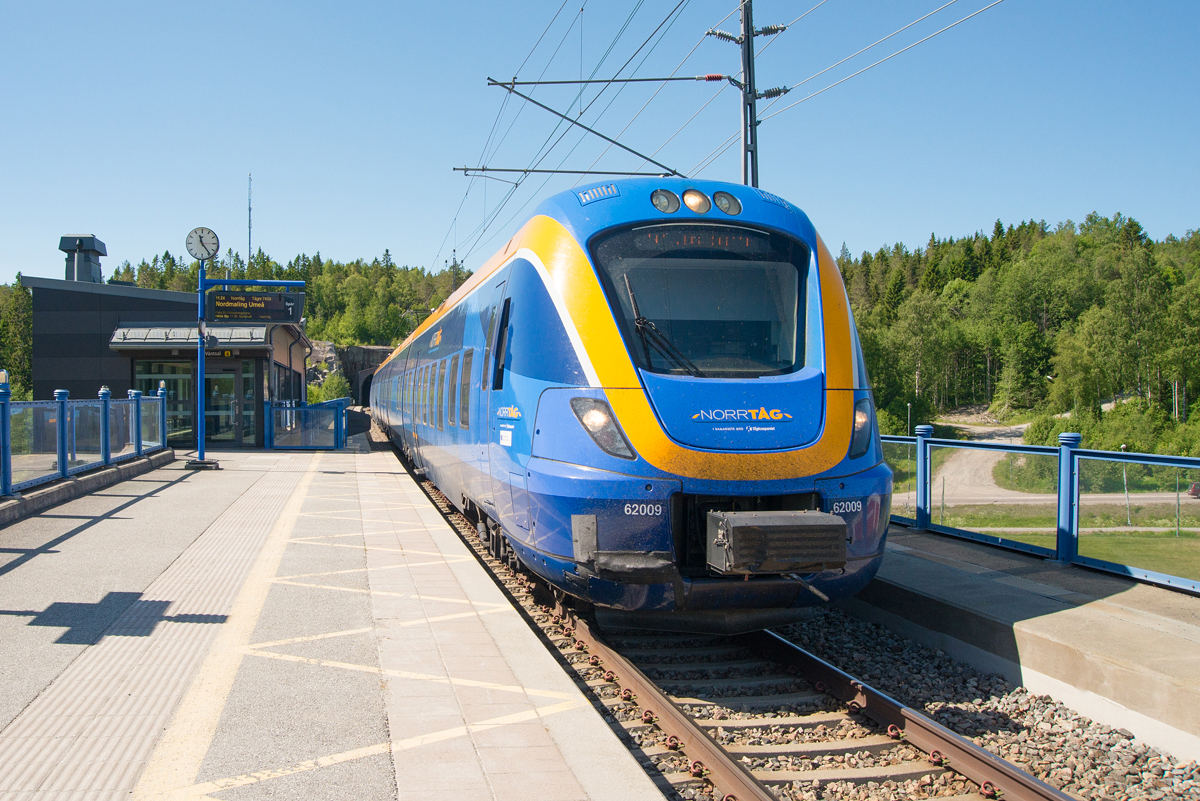 Norrtåg-Regionaltriebwagen 62009 am 11.06.2018 im Haltepunkt Husum
