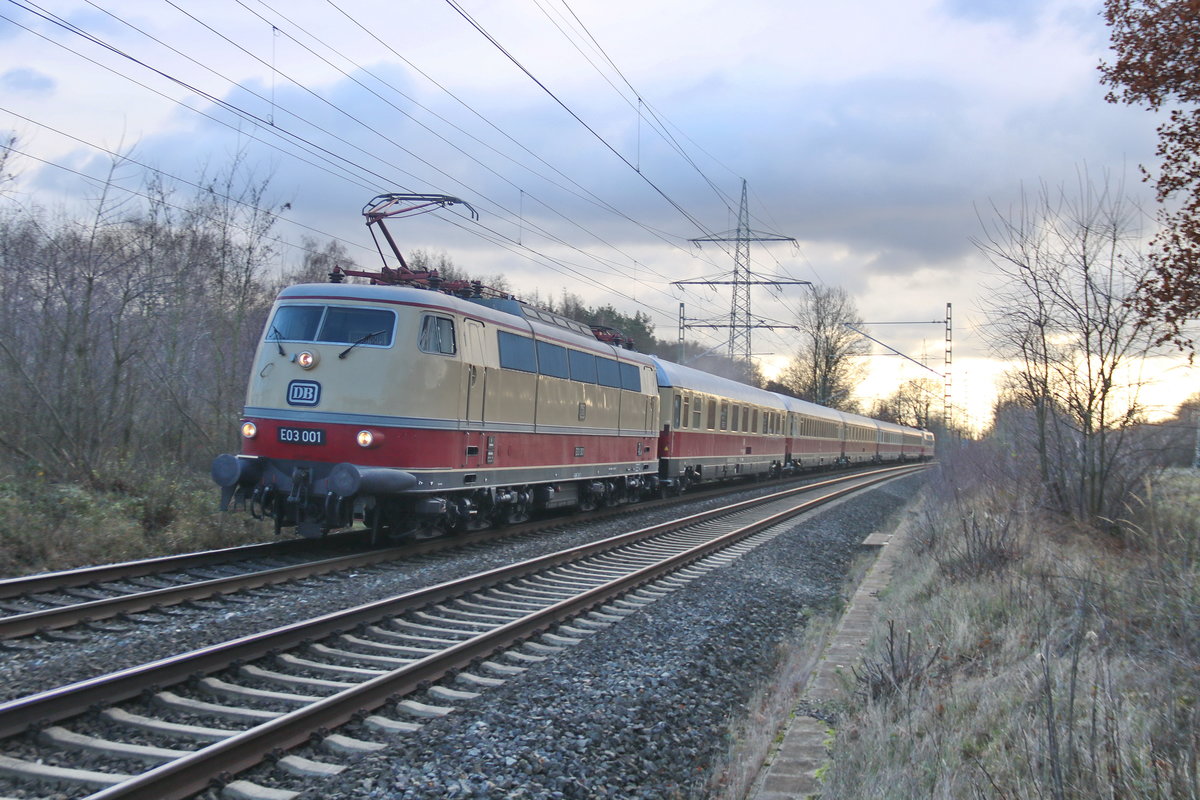 E03 001 machte sich Mitte Dezember 2018 mit ihrer Serienschwester 103 113 des DB-Museums auf große Deutschland Tour.