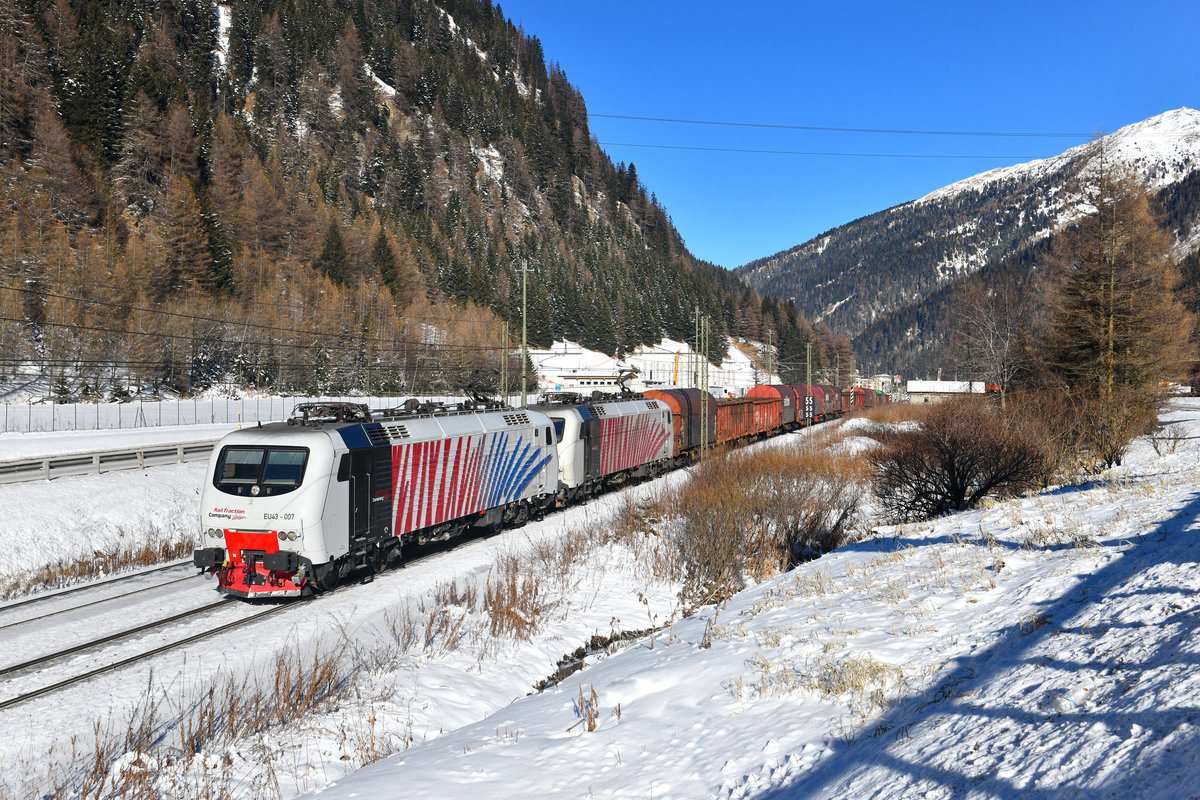 EU43 007 + EU43 005 mit GAG 44121 am 15.12.2018 bei Brennero.