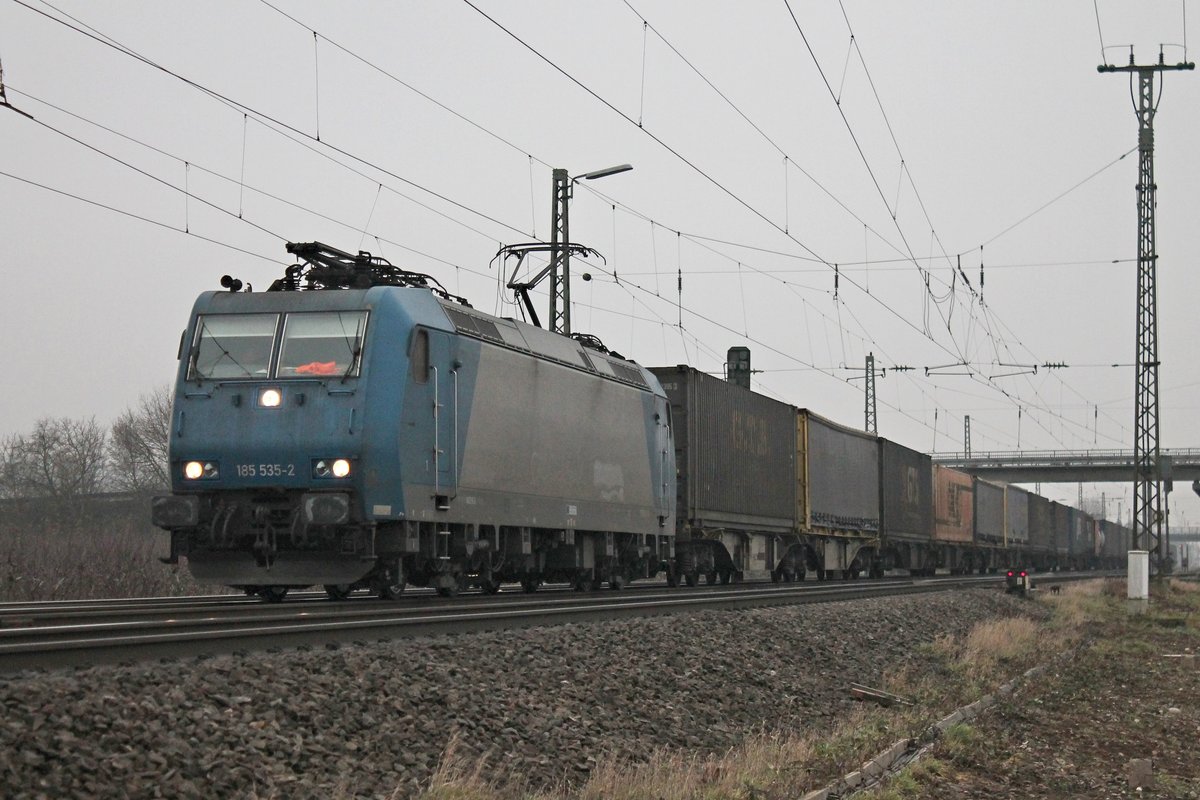 Am 20.12.2016 bespannte ATLU/Crossrail 185 535-2 einen Containerzug den sie in Muttenz von SBBCI übernommen hatte, als sie bei Müllheim (Baden) in Richtung Aachen West fuhr.