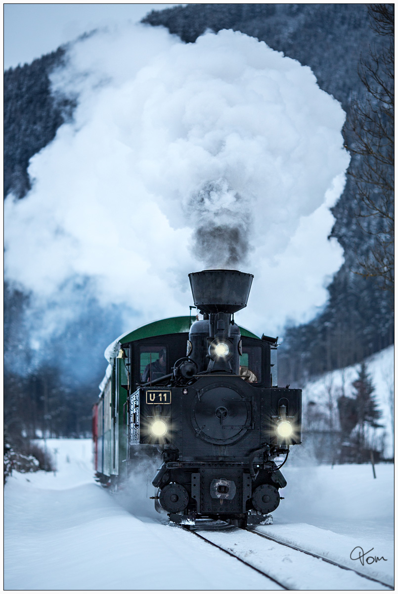 Die 124 Jahre alte Dampflok, U11 "Mauterndorf" fährt auf der Murtalbahn von Murau nach Stadl an der Mur.