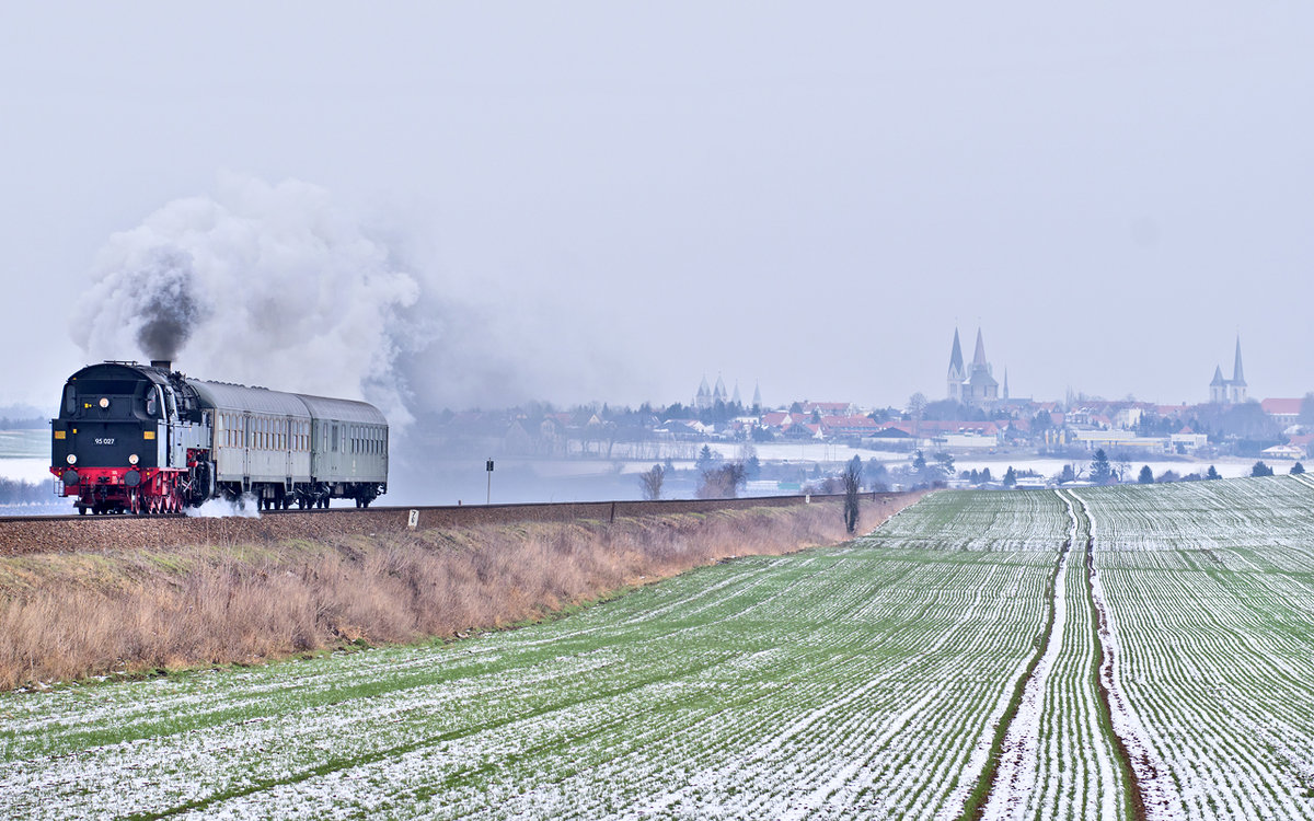 Die Dampflokomotive 95 027 hat soeben die Stadt Halberstadt verlassen und ist auf dem Weg ins Bw Blankenburg.Bild 10.2.2018