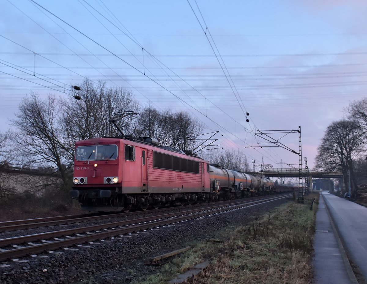 Ich konnte es ja nicht glauben, die ganze Zeit war es trüb und dunkel heute am späteren Nachmittag. Genau dann kam die 155 236-3 von Railpool mit einem Mischer aus Richtung Ratingen durch Lintorf. Samstag den 10.2.2018