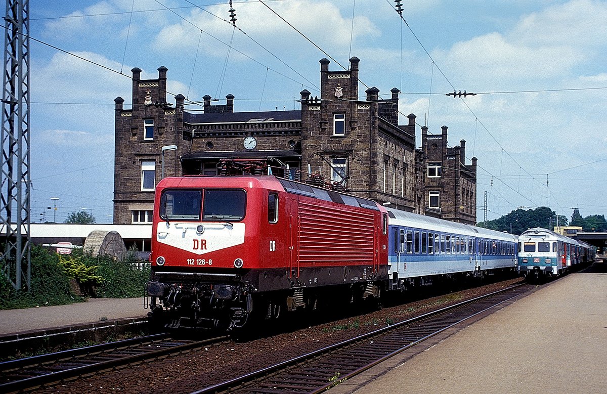LH 1002 ist hier in Form von 403005 und 403006 am 10.03.1993 um 10.29 Uhr im HBF Koblenz auf dem Weg nach Düsseldorf.