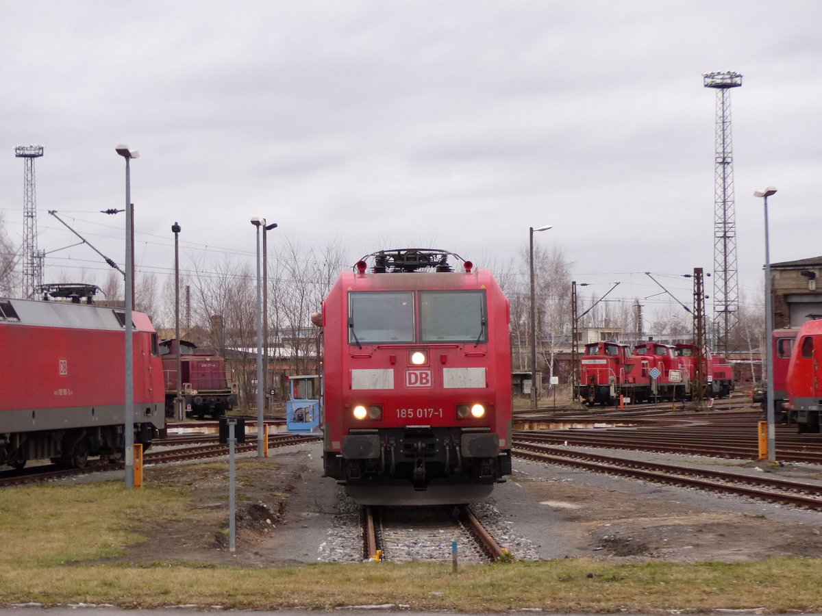 DB 185 017-1 am 28.01.2018 auf der Drehscheibe im Bw Leipzig Engelsdorf. Vom Hp aus fotografiert.
