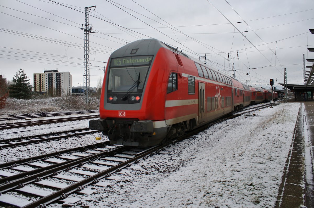 RE5 (RE4359) von Rostock Hauptbahnhof nach Elsterwerda wird am 3.2.2018 im Startbahnhof bereitgestellt. Zuglok war 182 017.