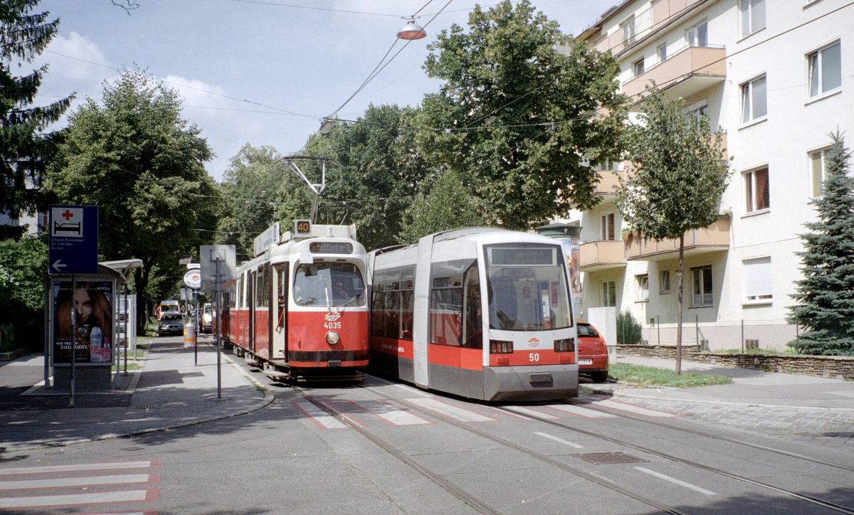 Wien Wiener Linien SL 40 (E2 4035 / A 50) XVIII, Währing, Gersthof, Herbeckstraße / Alsegger Straße (Hst. Alsegger Straße) am 5. August 2010. - Scan eines Farbnegativs. Film: Kodak FB 200-7. Kamera: Leica C2.
