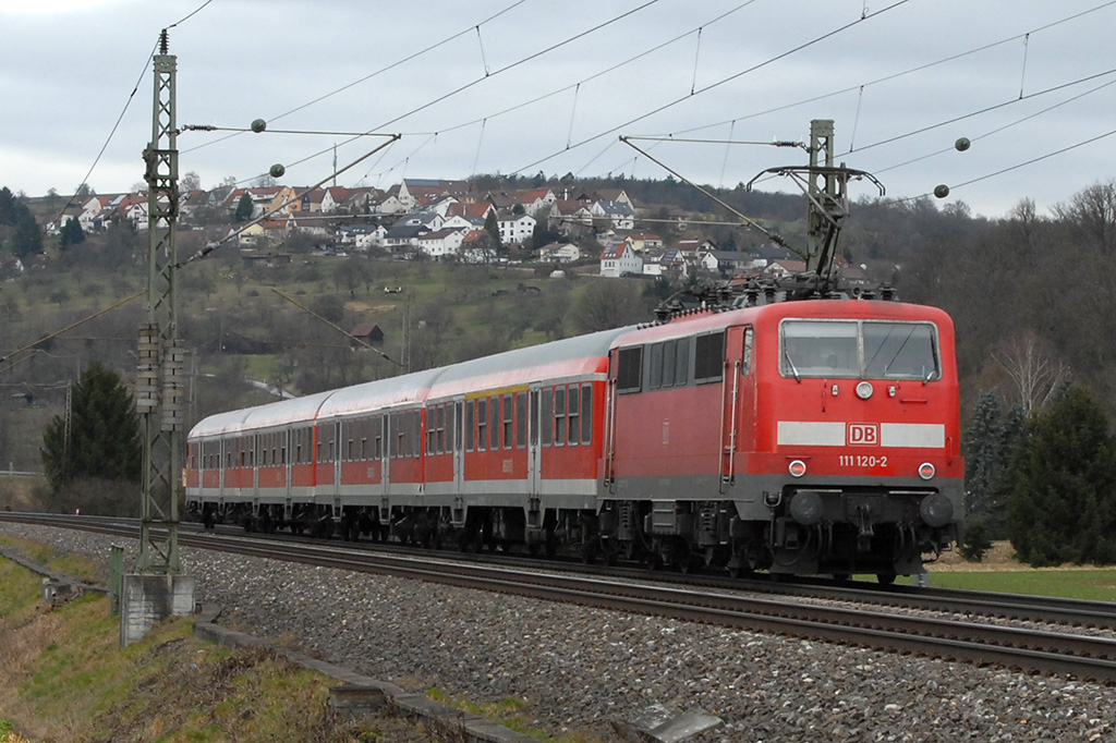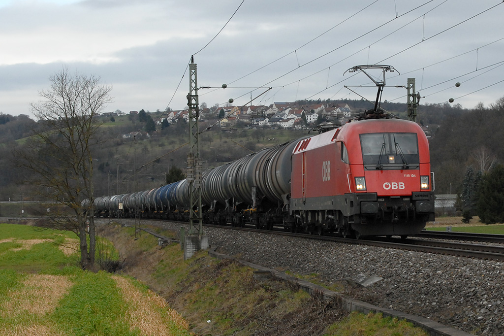 115 293 fährt am 13.02.2018 mit dem leicht verspäteten PbZ 2460 durch Westerstetten Richtung Stuttgart.