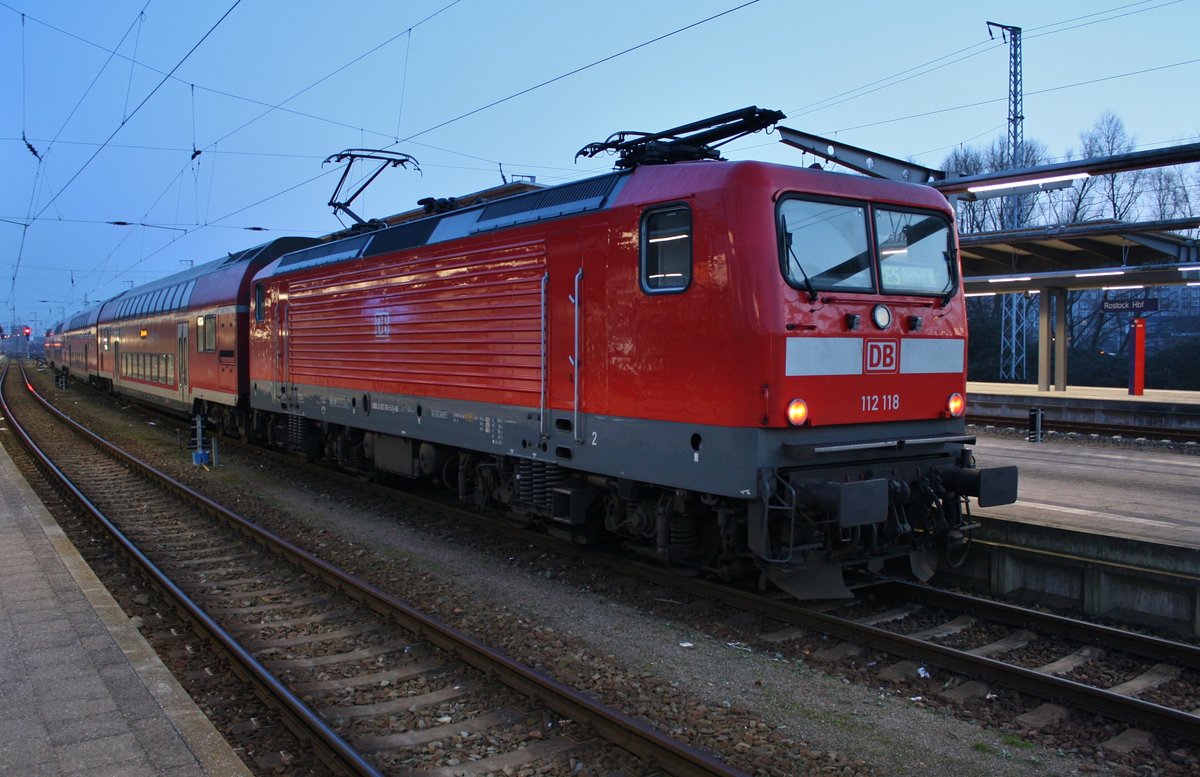 112 118 hat am 9.2.2018 mit dem RE5 (RE4360) von Elsterwerda den Rostocker Hauptbahnhof erreicht.