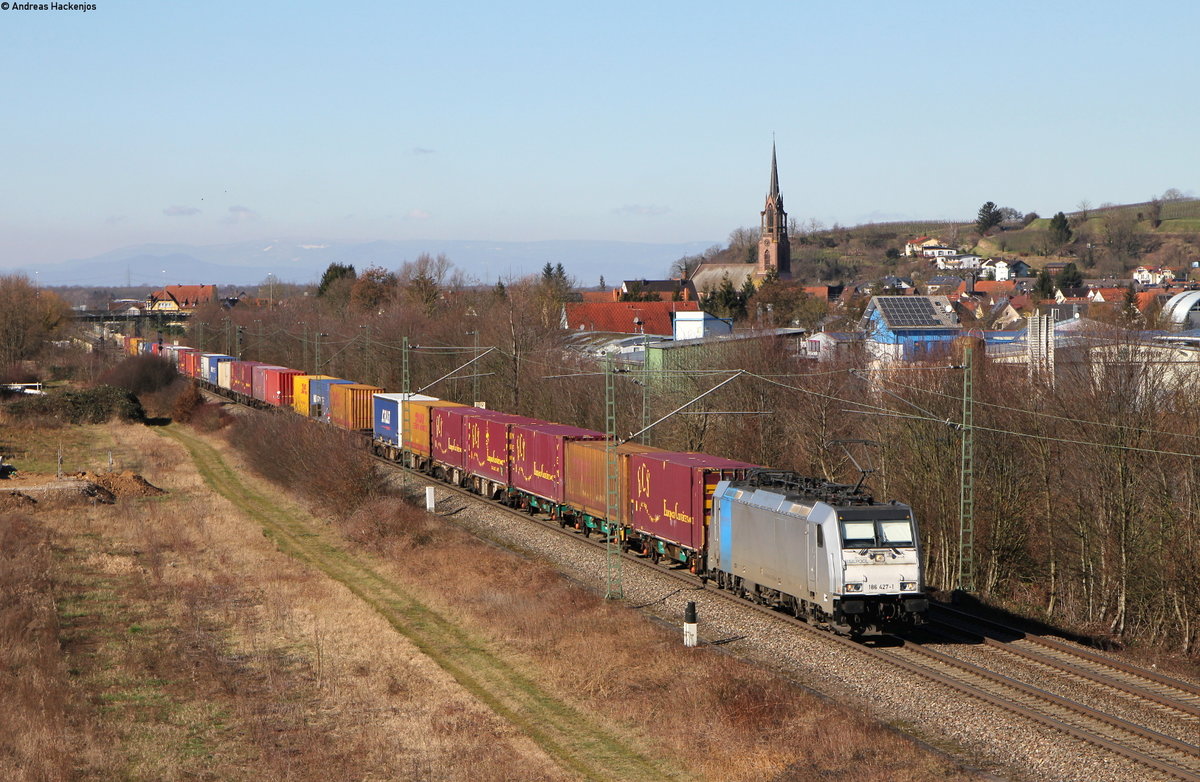 186 427-1 mit dem DGS 40043 (Zeebrügge-Basel SBB RB) bei Teningen 13.2.18