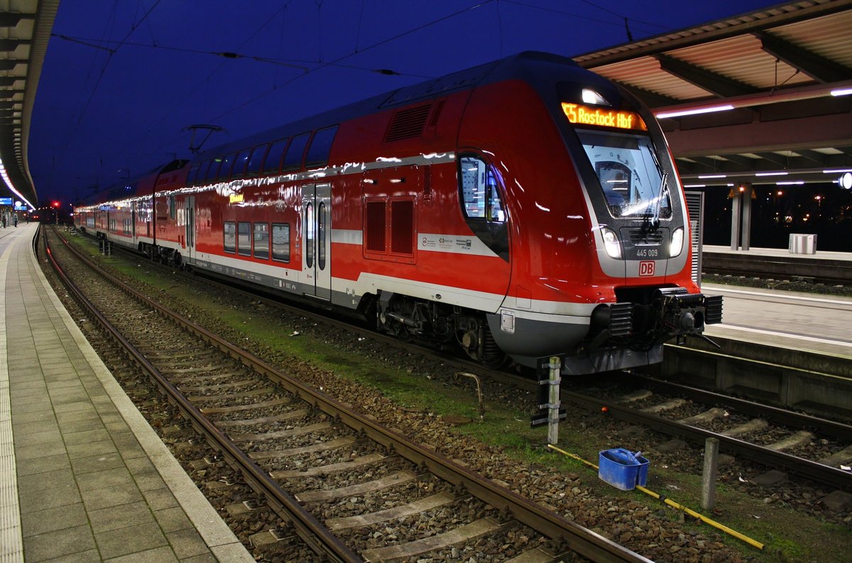 445 009-7 kam am 2.2.2018 als RE5 (RE4360) von Elsterwerda nach Rostock Hauptbahnhof.