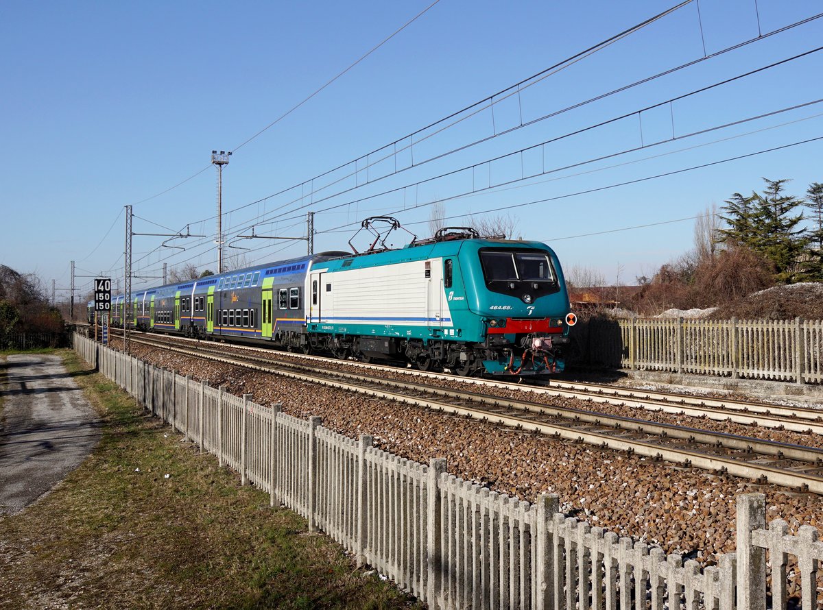 Die 464 657 mit einem Regionalzug am 10.02.2018 unterwegs bei Udine.