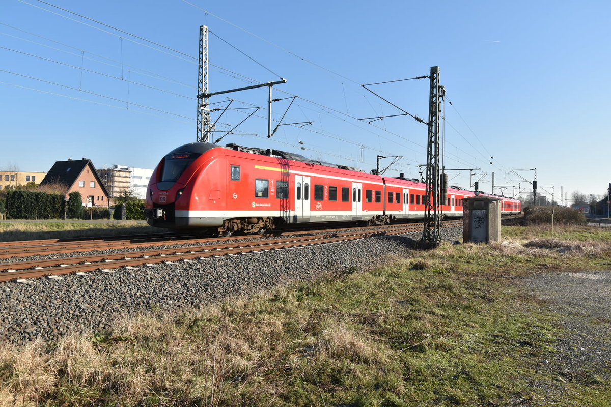 Ein S8 Zug nach Mönchengladbach verlässt Kleinenbroich am heutigen Mittwoch den 14.2.2018