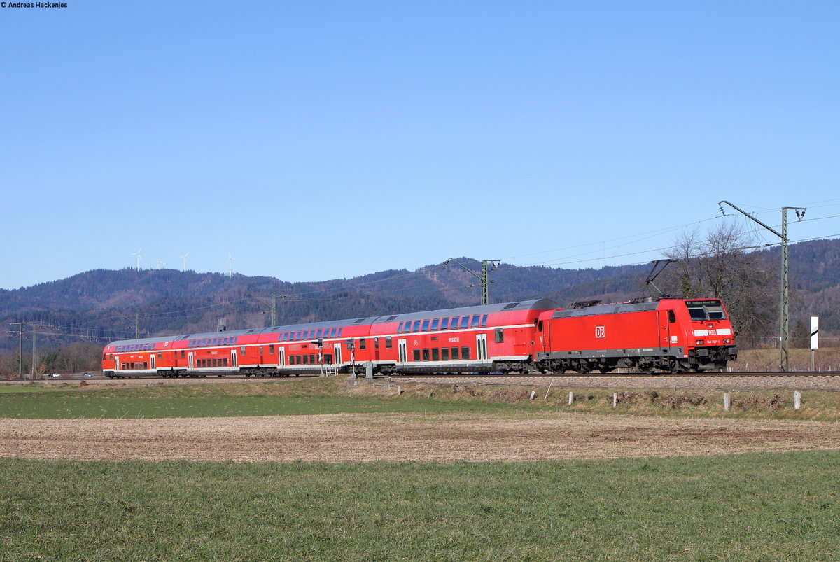 145 075-8 mit dem EZ 44625 (Mannheim Rbf-Basel SBB RB) bei Teningen 13.2.18