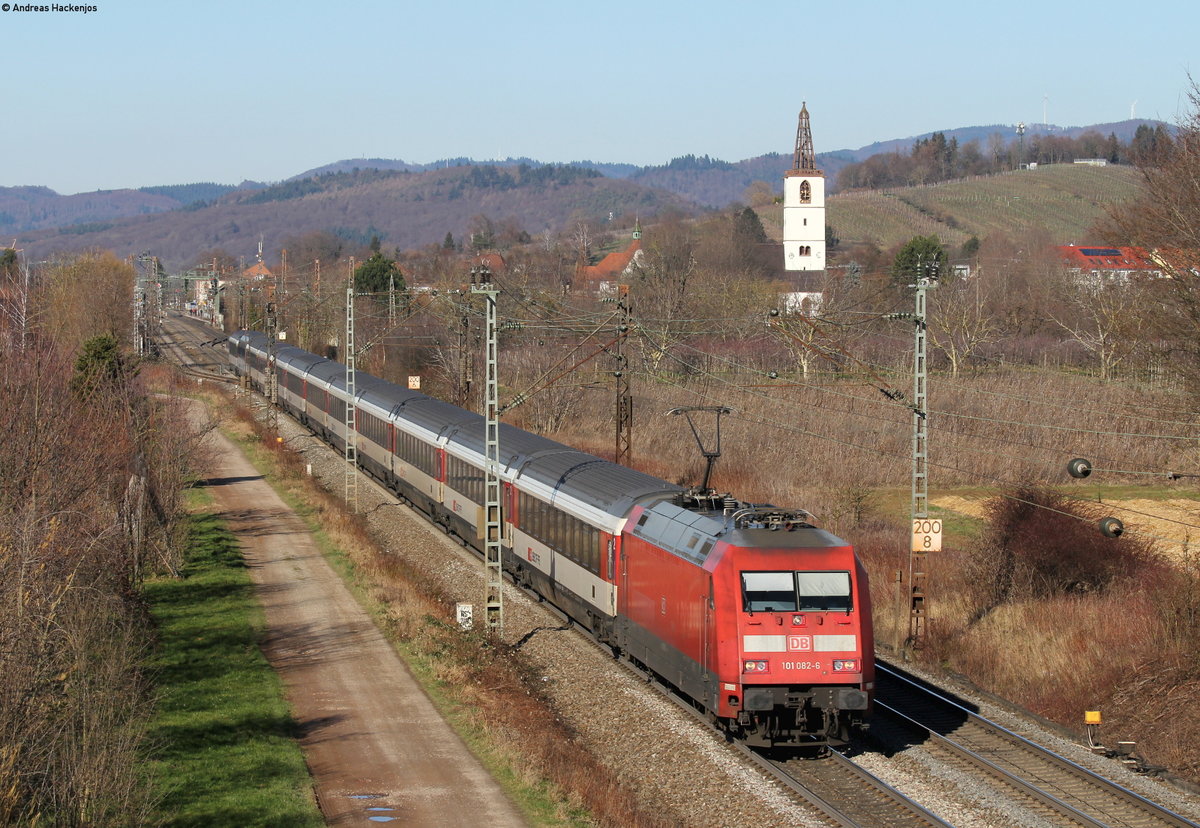 101 082-6 mit dem EC 9 (Hamburg Altona-Zürich HB) bei Denzlingen 13.2.18