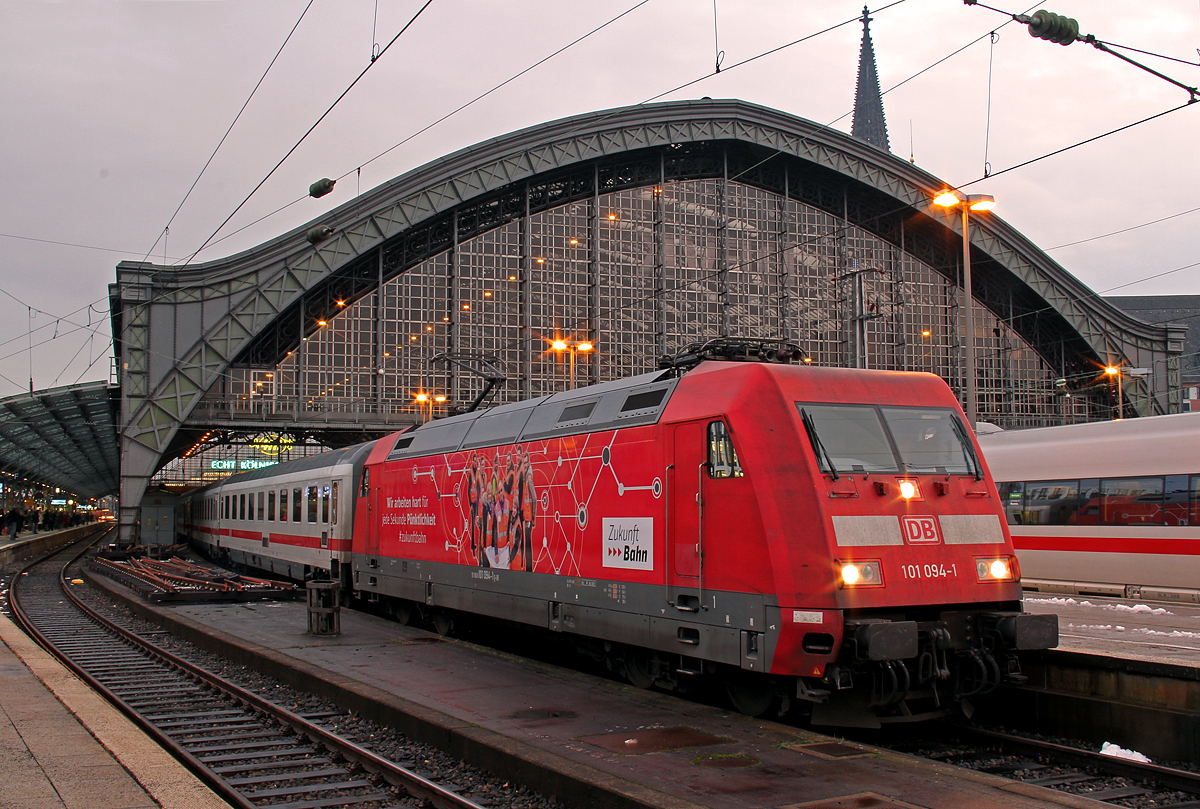 DB Lok 101 121-2 fährt beim Badischen Bahnhof ein. Die Aufnahme stammt vom 06.02.2018.