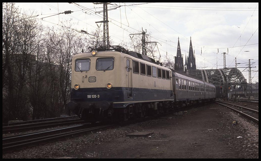 110120 fährt am 25.3.1993 um 14.31 Uhr mit dem E aus Kleve in Köln Deutz ein.