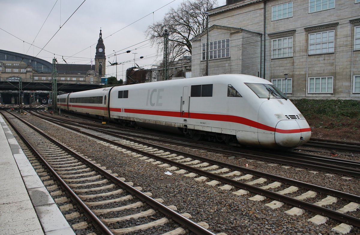 412 003 (0812 003-3) fährt am 10.2.2018 als ICE886 von München Hauptbahnhof nach Hamburg-Altona aus dem Hamburger Hauptbahnhof aus.